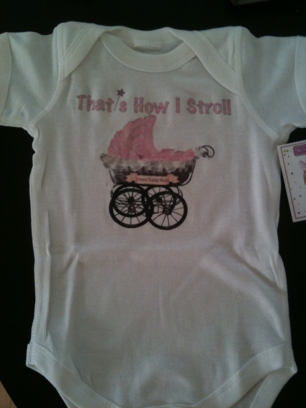 I haven’t yet bombarded you all with the absolutely precious layette pieces I have acquired for Baby, but I’m super excited about a onesie I got in the mail yesterday that I just have to share!