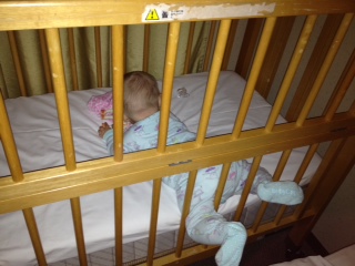 Speaking of cribs, this photo is the crib at the Westin Kyoto where I stayed recently with my mom. (It appeared to be standard size. There goes my theory about mini babies.) We termed it the “Death Crib”. Every time I put Elisabeth in it, she would get stuck between the slats. This led to three very long nights of co-sleeping. Never. Again.