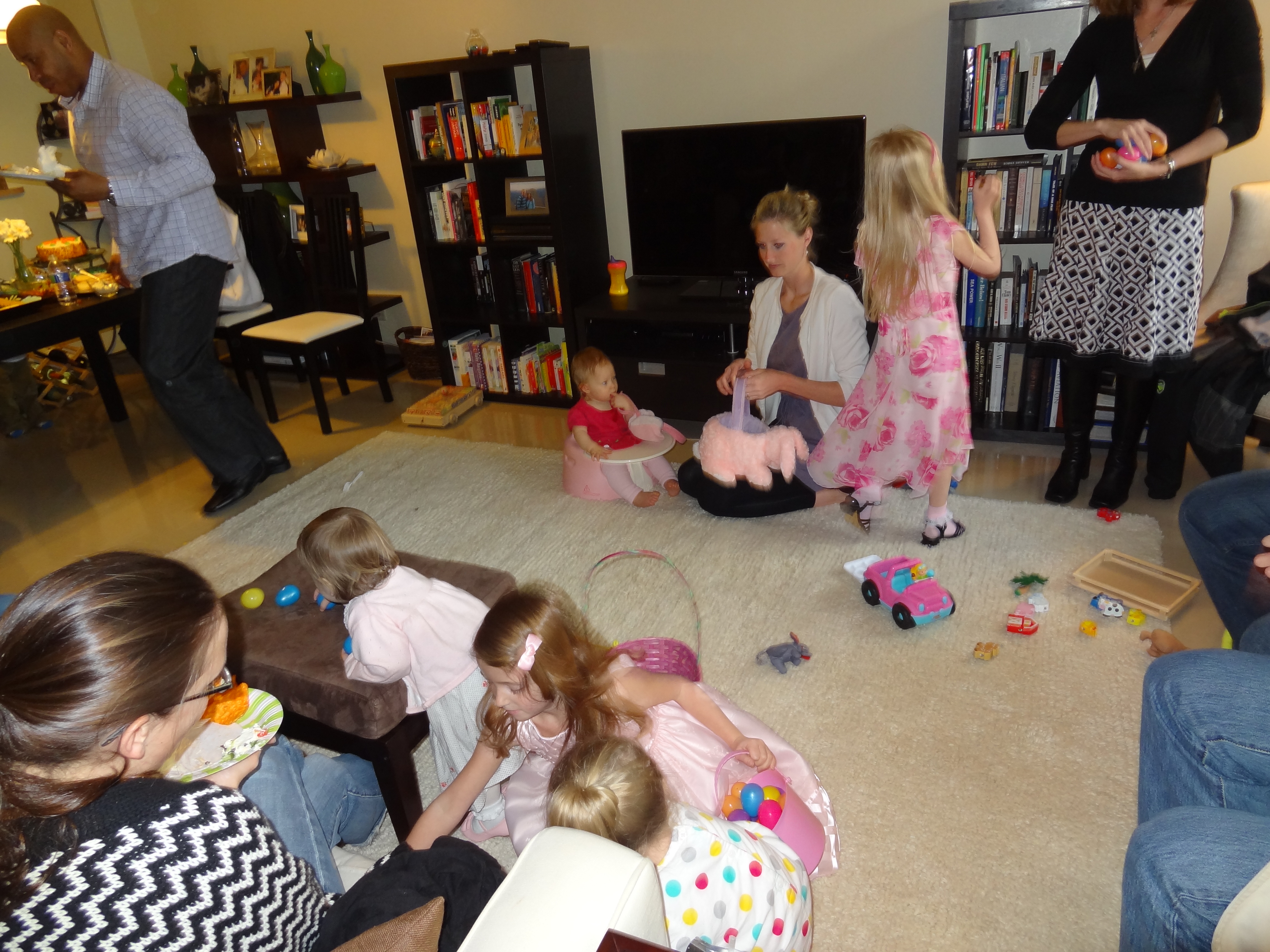 Ultimately the ham was edible. And ultimately, I think everyone had a good time. Everyone brought delicious dishes and helped profusely with the set-up and clean-up, the kids enjoyed the Easter egg hunt despite it being indoors, and that one five-year-old girl was the only incident of underage drinking at the party. Success.