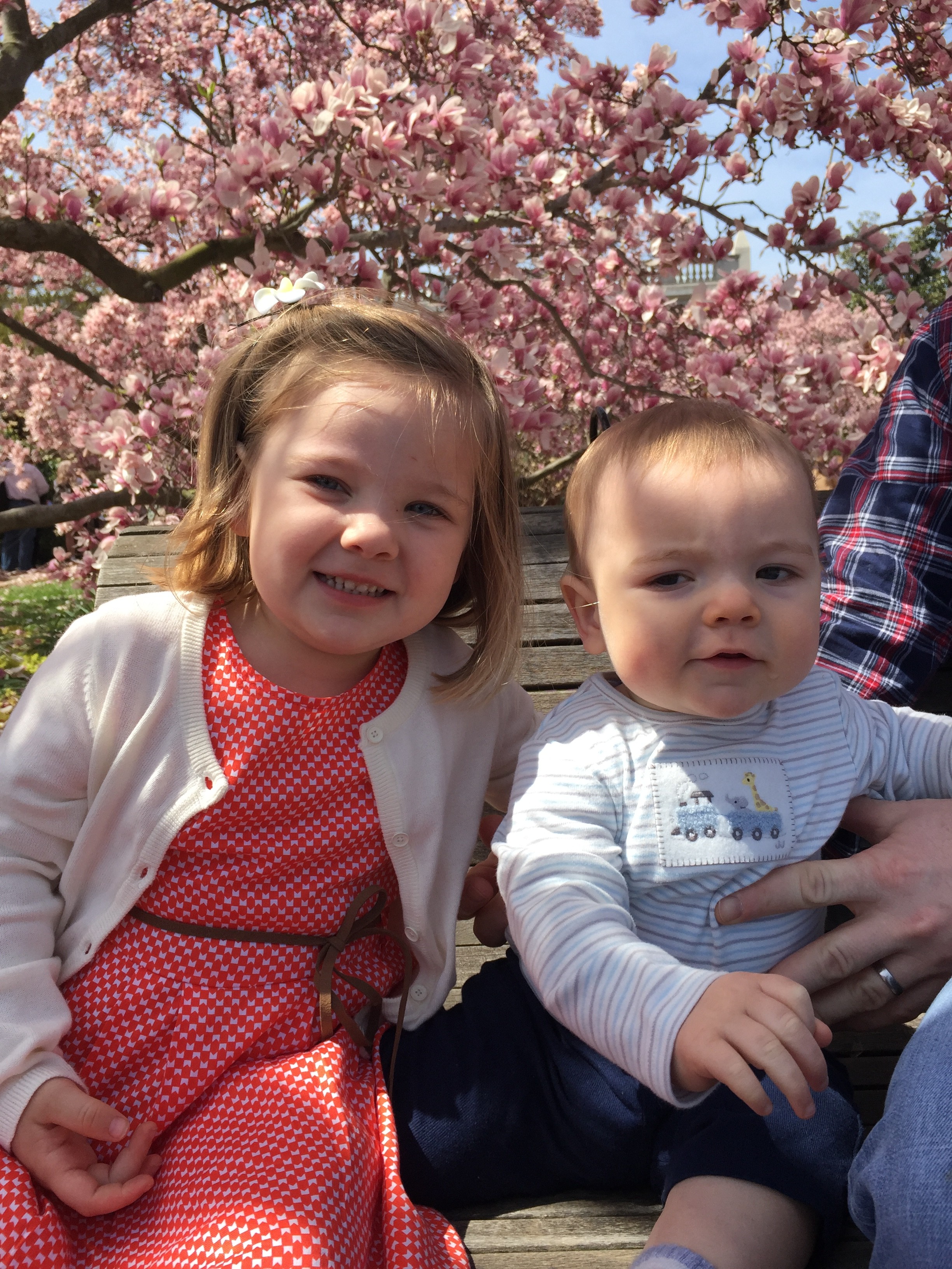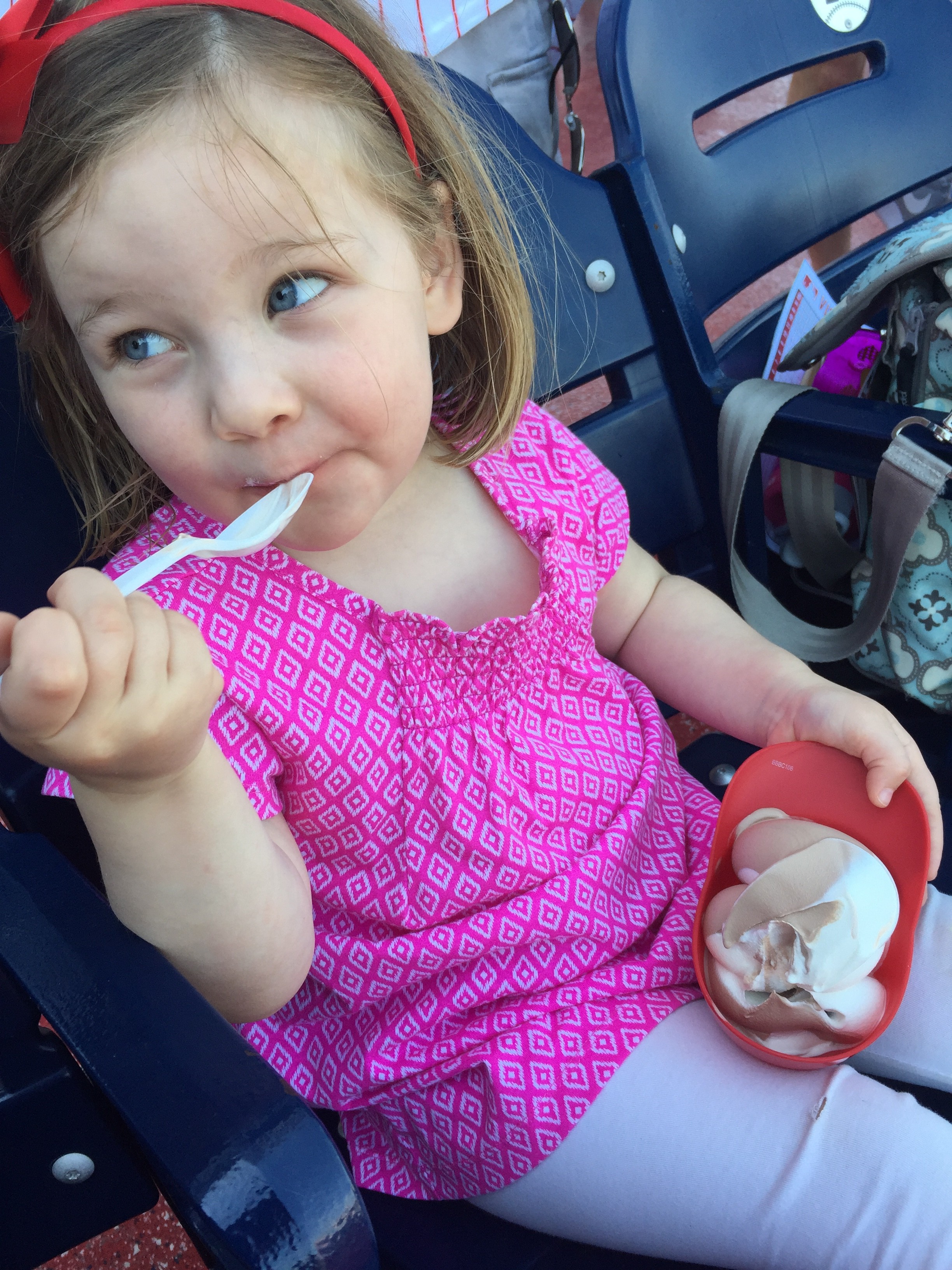 April: My dad has been coming to D.C. frequently for work, so we have been lucky enough to see my parents on a monthly basis, at least. April was no different, and my mom joined us for Easter. We hosted all our local family for Easter dinner, which I only did because my mom was here to cook. My mom, Elisabeth, and I saw the live action Cinderella in theaters, and Elisabeth has not taken off her Cinderella costume since then. My dad came in a few days later and caught the end of Cherry Blossom season. The kids also enjoyed their first baseball game: Nats-Phillies. The Nats crushed it, but Elisabeth was too busy enjoying her snacks to notice.