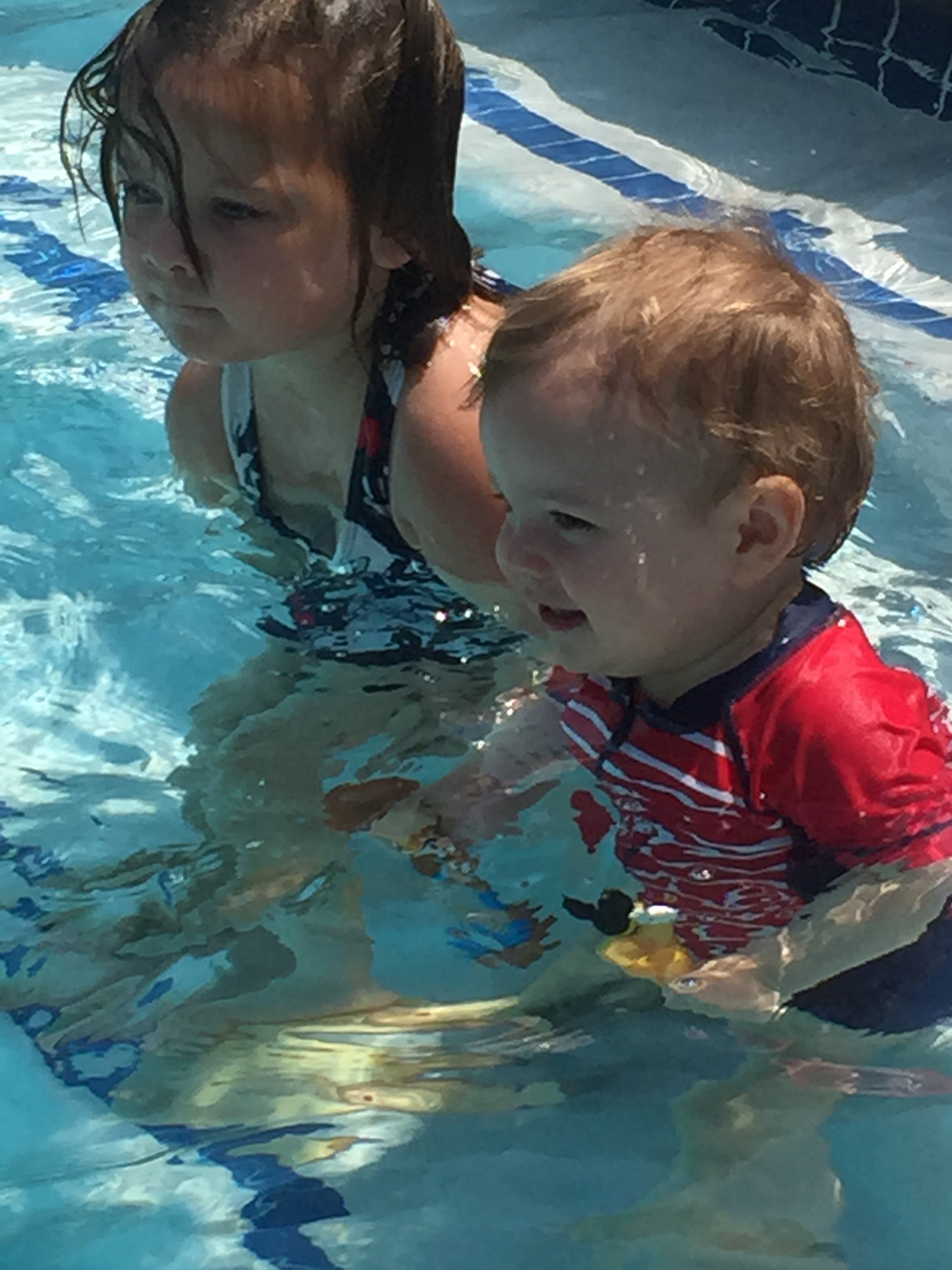 August: I hopped down to California with James for another three weeks or so and discovered that James is a swimming prodigy just like his older sister. Check him out. 15 months old, people.