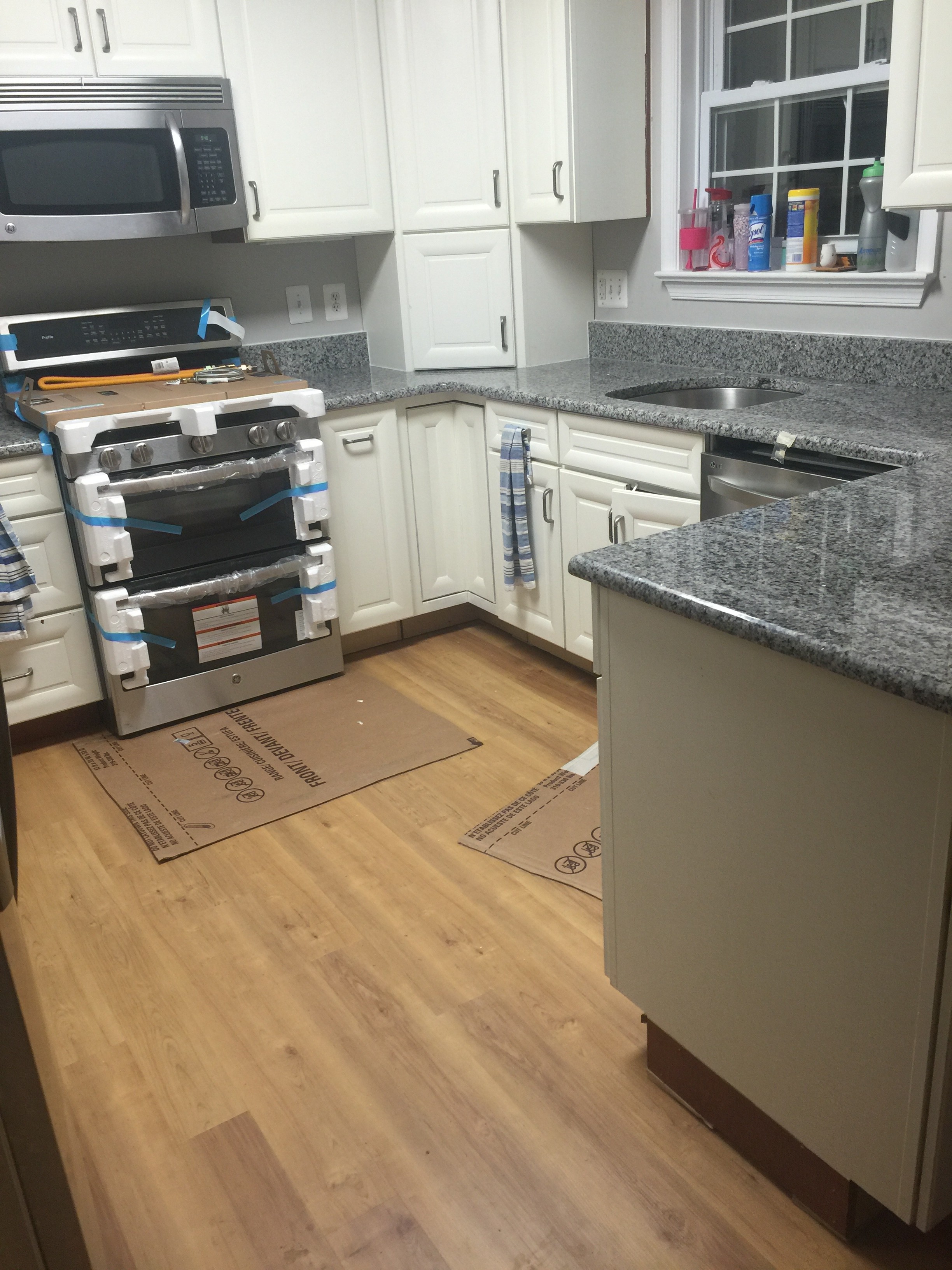 Oh, and our kitchen exploded. Okay, not really. But we had a slow leak that caused lots and lots of floor damage that we didn’t realize thanks to a large rubber mat in the kitchen. Hello, unexpected and unwelcome kitchen renovation. Buh-bye dishwasher, kitchen floor, cabinets, and countertops.